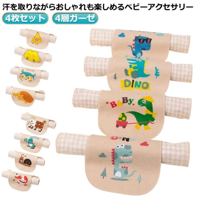 | 4枚セット!汗を取りながらおしゃれも楽しめるベビーアクセサリー。 吸水性・速乾性に優れた4層ガーゼ。赤ちゃんの汗を吸収しお洋服を清潔に保ちます。 洗濯機で洗えるので、汚れたらサッと洗って清潔をキープできます。 長時間のお出かけや旅行、スポーツなどすぐに着替えられない時には大変助かる。 | |