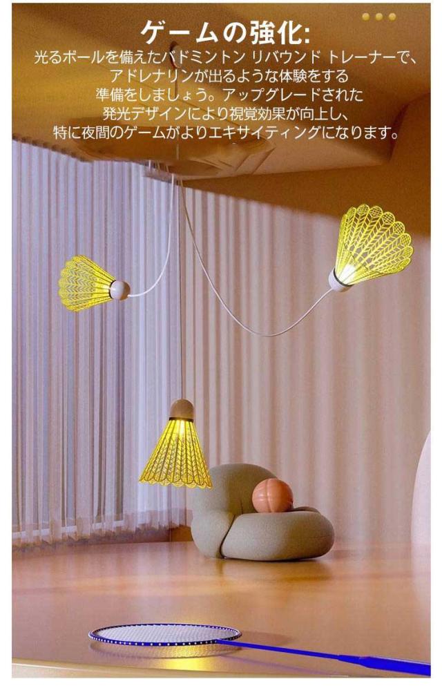 室内バドミントン 一人 3点セット 戻ってくる 夜光 練習用 セット バドミントントレーニング バドミントン用ボール トレーナー 練習用 自動リバウンド 発光バドミントン