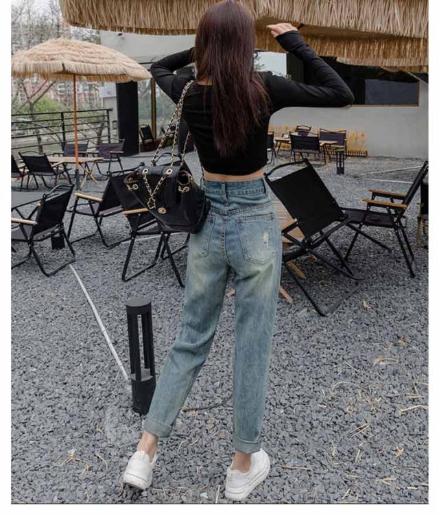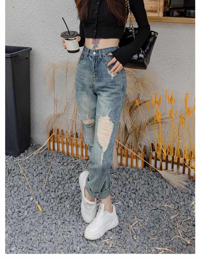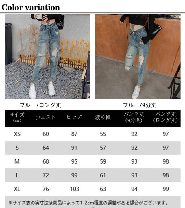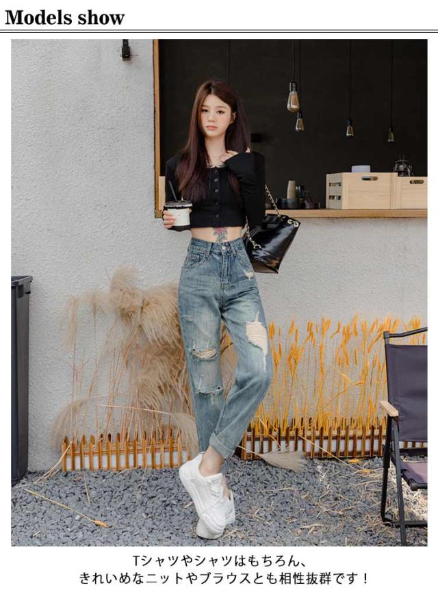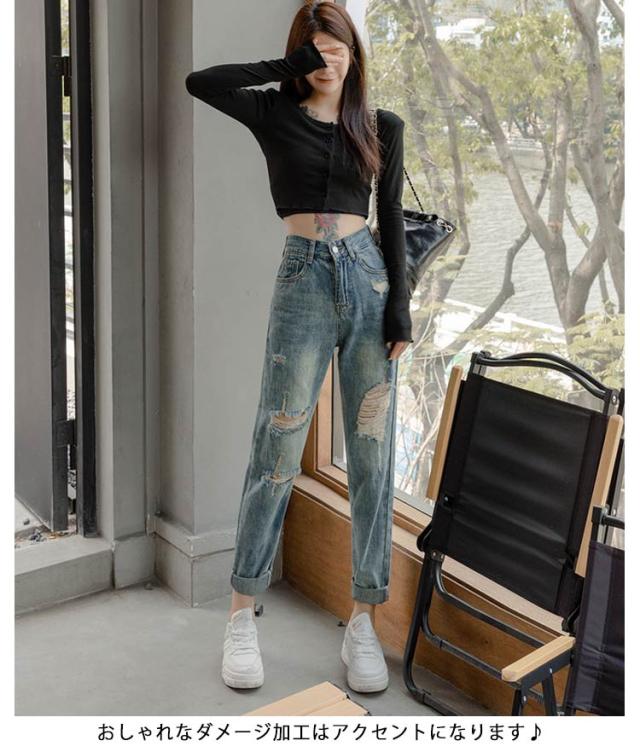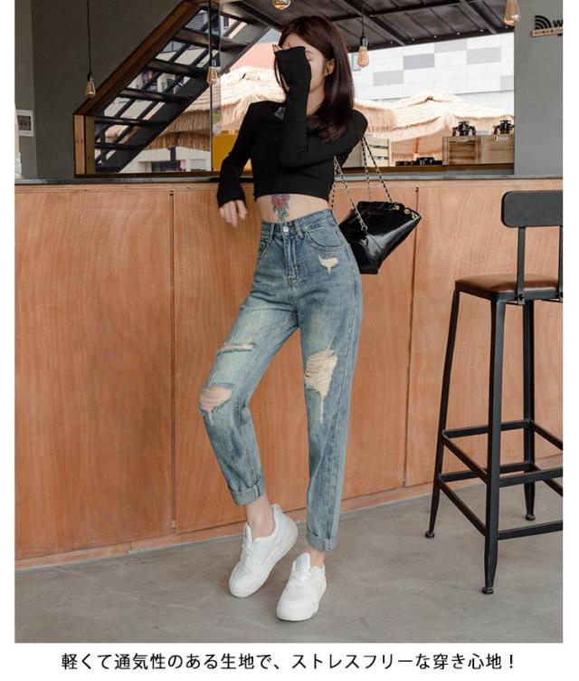 デニムパンツ 春秋 ゆったり 美脚 ジーンズ ダメージデニム ロングパンツ ジーパン ダメージデニム 夏 体型カバー ワイドパンツ レディース ルーズ ボトムス 着?せ ハイウエスト 脚長効果 おしゃれ カジュアル 通学 普段着