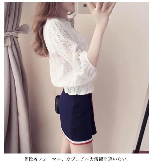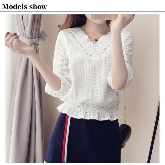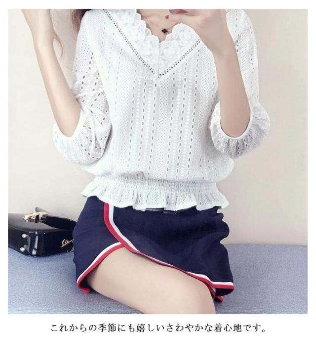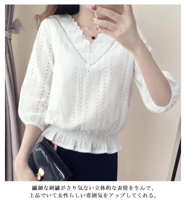 刺繍 ブラウス レース シャツブラウス ゆったり 五分袖 通学 トップス 大人可愛い 夏服 プルオーバー 春 かわいい パフスリーブ 大きいサイズ レース Vネック 刺しゅう 秋 夏 通勤 OL 送料無料 シンプル おしゃれ 体型カバー プレゼント ギフト