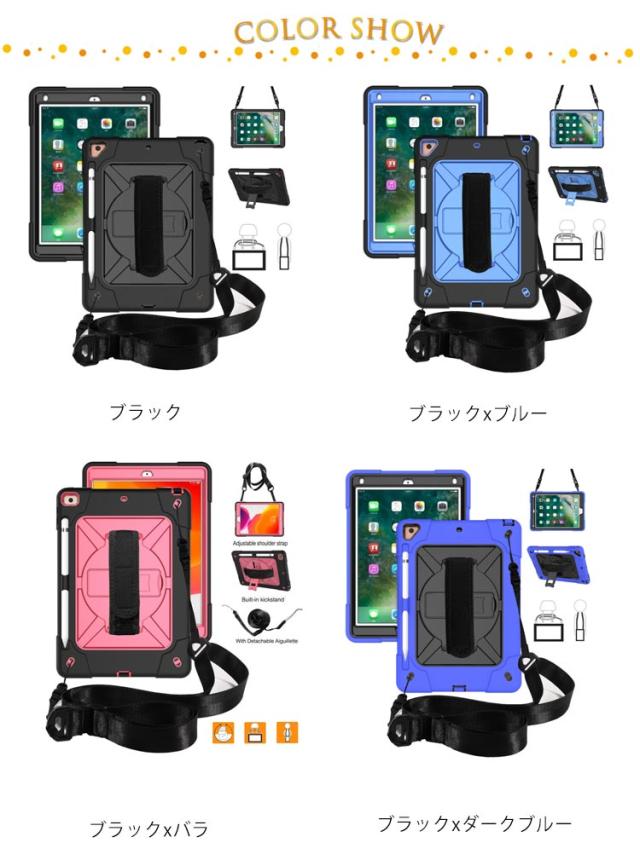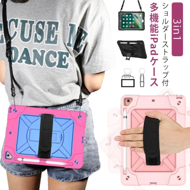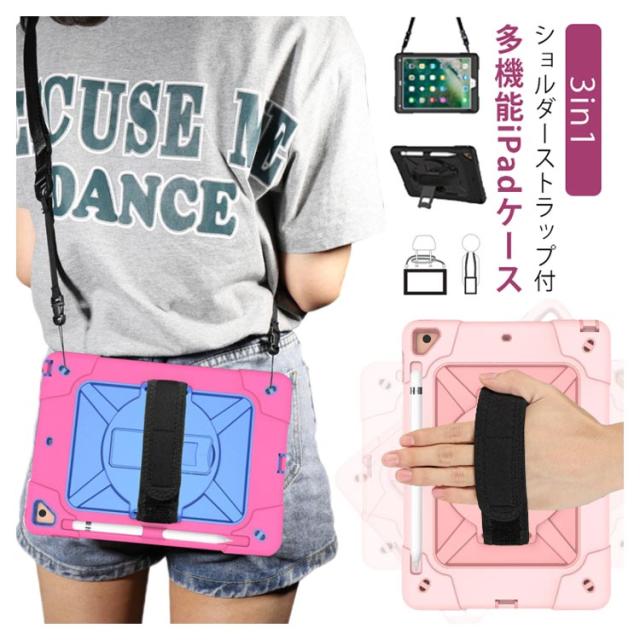アイパッドケース ショルダーストラップ付 保護 ハードケース 多機能 iPad ハンドホルダー 360度 マルチ カバー 第10世代 ipad 9.7 スタンド ケース ビジネス 縦置き スタンド ペン収納 旅行 世代 落下防止 トラベル 仕事 業務用 多機能 第5 第6 第7 第8 ミニ pro mini air