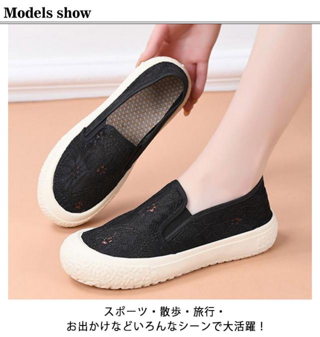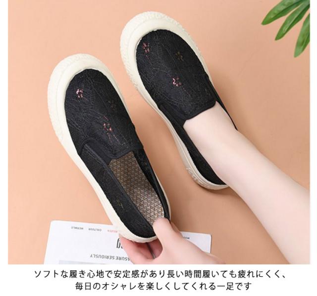 春夏 レディース メッシュスリッポン 透け感 かわいい すりっぽん 蒸れない レース きれいめ ぺたんこ メッシュスリッポン おしゃれ カジュアルシューズ 美脚 超軽量 軽量 大人 ナースシューズ 婦人靴 楽ちん ウォキングシューズ 滑り止め 歩きやすい 快適 ギフト プレゼント
