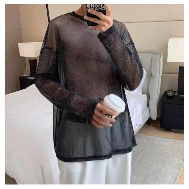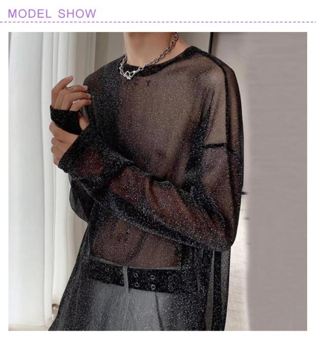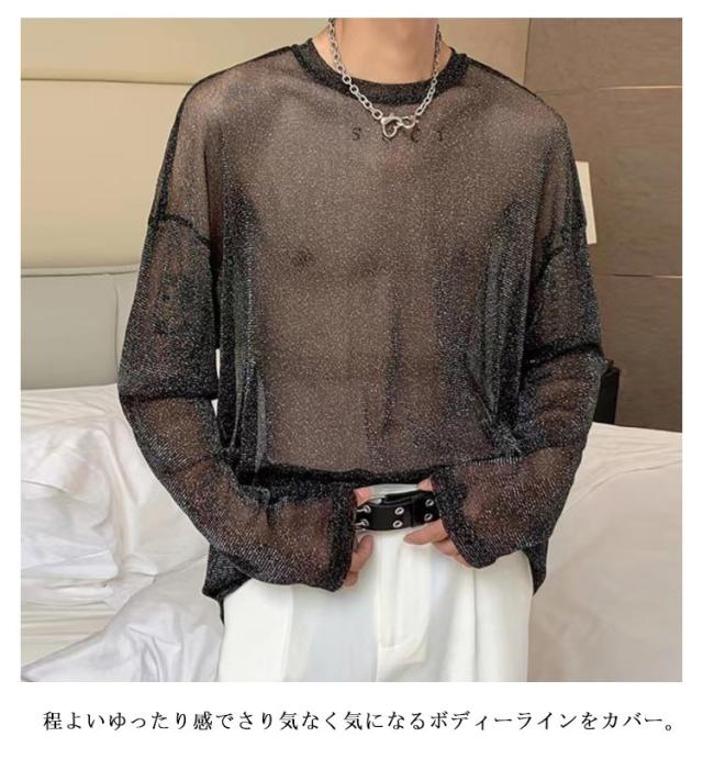 透け シアーブラウス シアートップス 重ね着 シースルー セクシー 透け感 Tシャツ トップス 長袖 ロンT おしゃれ シアーシャツ L 薄手 カジュアル 透け 韓国ファッション 春夏 メンズ キラキラ ダンスウェア M ラメ系 XL 2XL 3XL 4XL