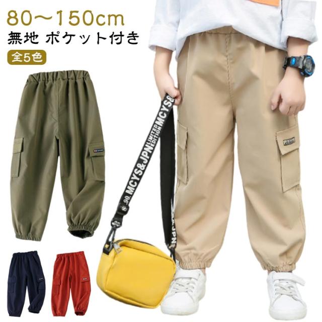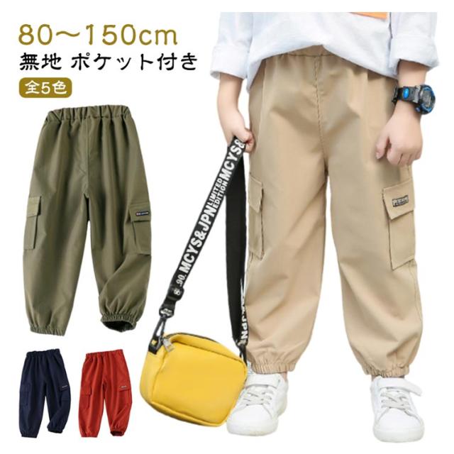 夏 春 キッズ 長ズボン ウエストゴム 男の子 子供服 女の子 ポケット付き 虫よけ ボトムス 無地 ベビー カーゴパンツ 110 パンツ 秋 ロングパンツ 裾口ゴム ボーイズ 女の子 女児 ガールズ 虫除け 80 90 100 夏 120 130 シンプル