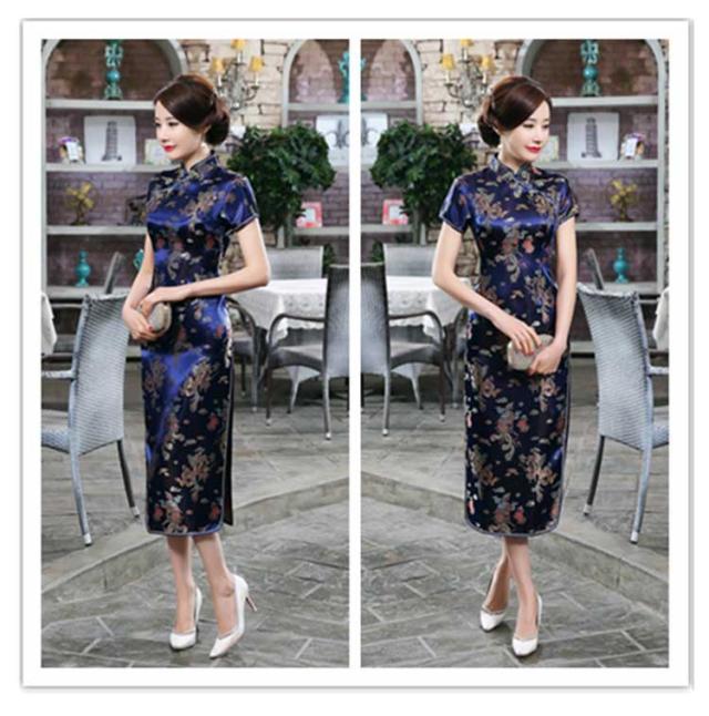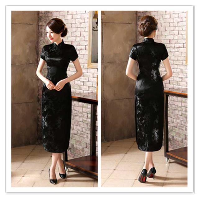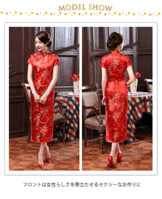 | 上品な刺繍が施されたロング丈チャイナドレス・ロングドレス フロントは女性らしさを際立たせるセクシーなお作りに 光沢がある生地感がとても綺麗、普段使いから、パーティー、二次会にもお勧め! | |