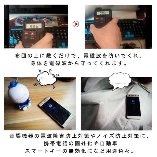 | 電磁波ドクロス 110×200cm パソコン・スマートフォン・Wi-fi機器・電子レンジなど日常的に使う様々な家電、屋外では携帯電話の基地局・電波塔などから電磁波が大量に発生しています。 布団の上に敷くだけで、電磁波を防いでくれ、身体を電磁波から守ってくれます。 また、携帯電話を包んで電波を遮断したり、床やベットの下に敷いたり、壁に貼ったり、体を包む事で電磁波を防ぐことができます。 生地は柔らかい為、裁断、縫製も可能です。財布やカードケースの裏地にしたりdiyできます。 音響機器の電波障害防止対策やノイズ防止対策に、携帯電話の圏外化や自動車スマートキーの無効化になど用途色々。 | |