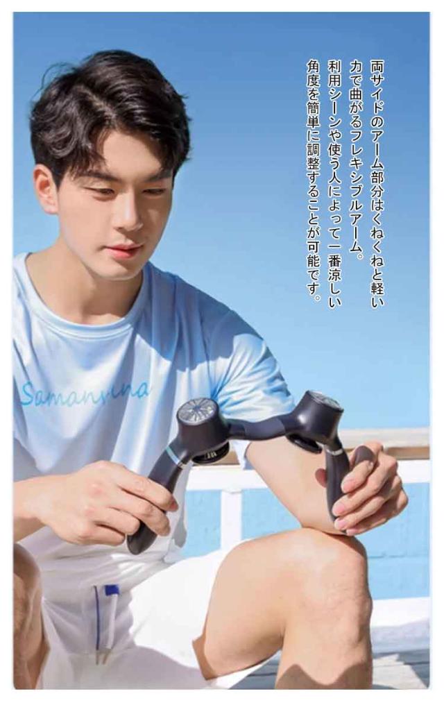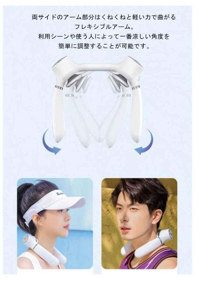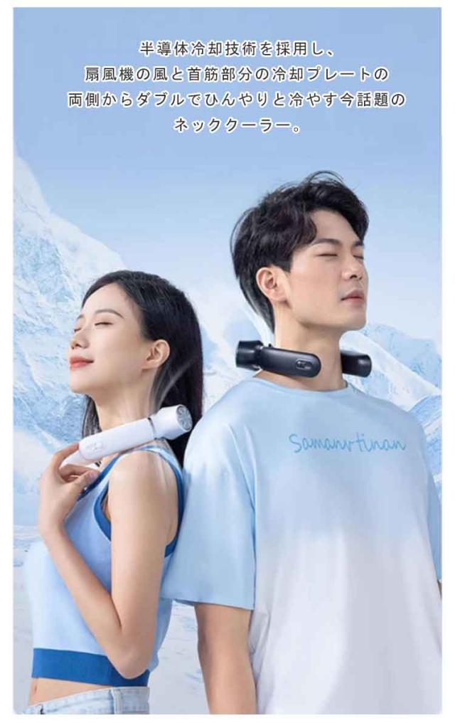 | 半導体冷却技術を採用し、扇風機の風と首筋部分の冷却プレートの両側からダブルでひんやりと冷やす今話題のネッククーラー。 「瞬間冷却プレート」と「高速回転ファン」の二つの冷却機能を搭載。表皮に留まらず、体の奥までキンキンに冷やします。真夏日の熱中症対策に最適です。 両サイドのアーム部分はくねくねと軽い力で曲がるフレキシブルアーム。利用シーンや使う人によって一番涼しい角度を簡単に調整することが可能です。 ヘッドホンのように首に掛けるタイプなので両手が空いて、ハンズフリーで使用できます。 充電式のすっきりコードレスタイプでスポーツやアウトドア、キャンプ、通勤・通学、家事の間やお風呂あがりなど、様々なシーンで活躍♪ | |