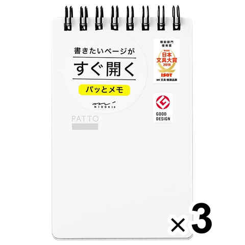 【3冊セット】 メモ帳 リングメモ パッと 白 ミニ 12.8×7.6cm 2.5mm方眼罫 80枚 MD用紙 ビジネス ミドリ 送料無料