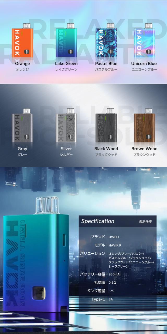より扱いやすく、美味しさが追求された「UWELL Havok R」をぜひ体感してください。