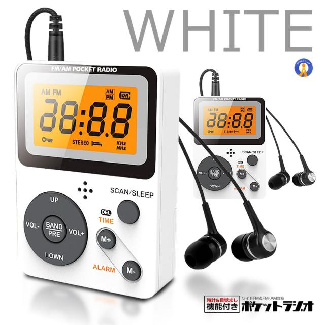 お洒落なポケットラジオ♪コンパクトサイズでイヤホンとストラップも付属!電車などの公共場所にも便利なポータブルラジオです。・お洒落なデザインで時計目覚ましの機能もついています。・ライト付きLCD画面つきで見やすいです・DSP技術採用で信号が安定しており高感度で高受信です。・全周波数対応で日本国内だけでなく国外使用可能なラジオです。・災害時も安心の電池式・スピーカーと組み合わせればイヤホンなしもご使用頂けます。・メモリー機能・ロック機能・誤作動防止のロック機能も付き・時計・目覚まし機能付き商品内容:ポケットラジオ x1イヤホン x1 ストラップ x1日本語取扱説明書 x1商品仕様:サイズ:87x56x20mm電池式:単4電池x2(電池は付属していません。)送料無料
