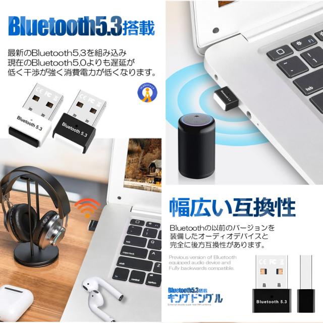 新型Bluetooth5.3 アダプタ ドングル USB EDR LE対応 省電力 低遅延 小型 パソコン 無線 音楽 イヤホン プリンター キーボード スピーカー RTL812