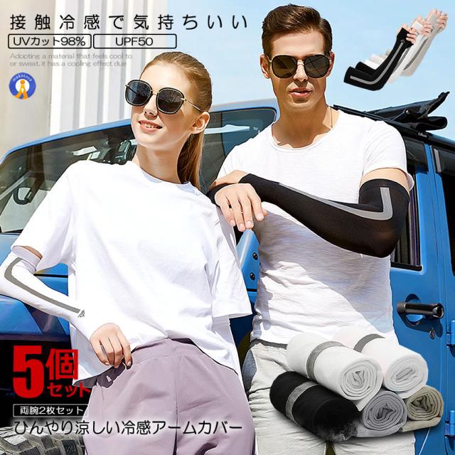 5個セット 接触冷感 日除け アームカバー 左右セット ひんやり 腕カバー UVカット 日焼け止め 吸汗速乾 ジム 運動 筋トレ トレーニング フィットネス スポーツ エクササイズ REHIKA