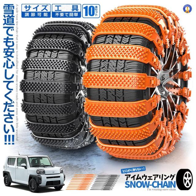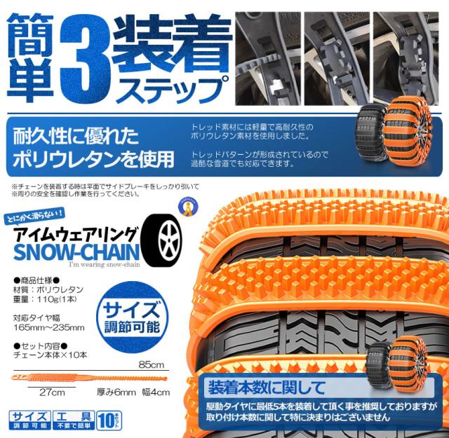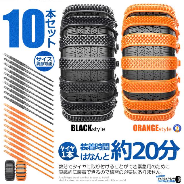 スノーチェーン 10本セット サイズ調節可能 非金属 車用 ゴム素材 アイスバーン スリップ防止 簡単装着 タイヤチェーン 雪道走行 安心 安全 取付簡単 緊急時 YUKICHAIN