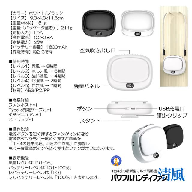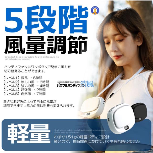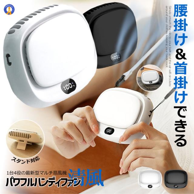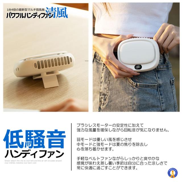 腰掛け扇風機 ベルトファン ハンディファン LED残量表示 大容量 クーラー 超強風 5段階風量 首掛け扇風機 Type-C 手持ち 卓上 小型軽量 ハンズフリー 熱中症対策 暑さ対策 首掛け 工事 アウトドア 屋外作業 旅行用 4IN1SENPU