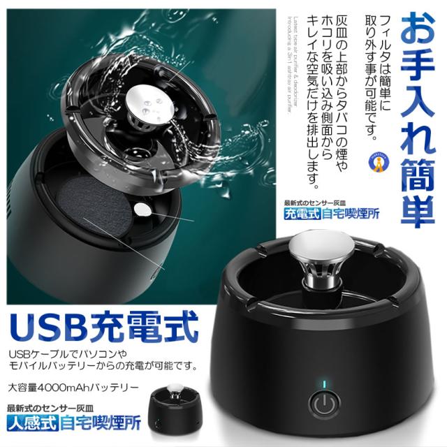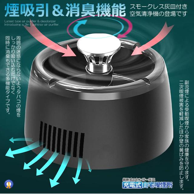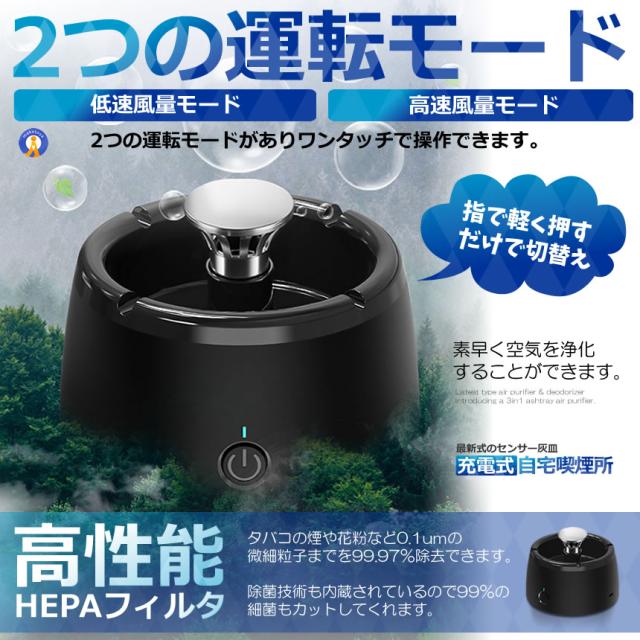 最新2WAYスモークレス灰皿最新タイプ空気清浄&脱臭機灰皿の3in1空気清浄機機が登場。煙吸引&消臭機能周囲の迷惑にならないようタバコの煙をしっかり吸い込むだけでなく同時に消臭もできる多機能タイプです。副流煙による受動喫煙から家族の健康を守ります。二次喫煙被害を軽減したほか壁の黄ばみを防止します。高性能HEPAフィルタ&お手入れ簡単2つの運転モード「低速モード」「高速モード」の運転モードがありワンタッチで操作できます。USB充電式&4000mAh大容量バッテリー送料無料