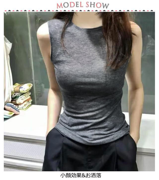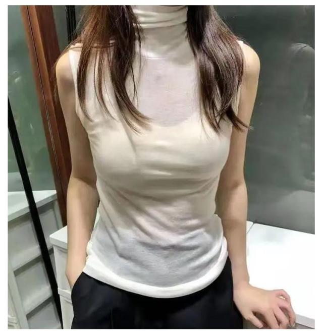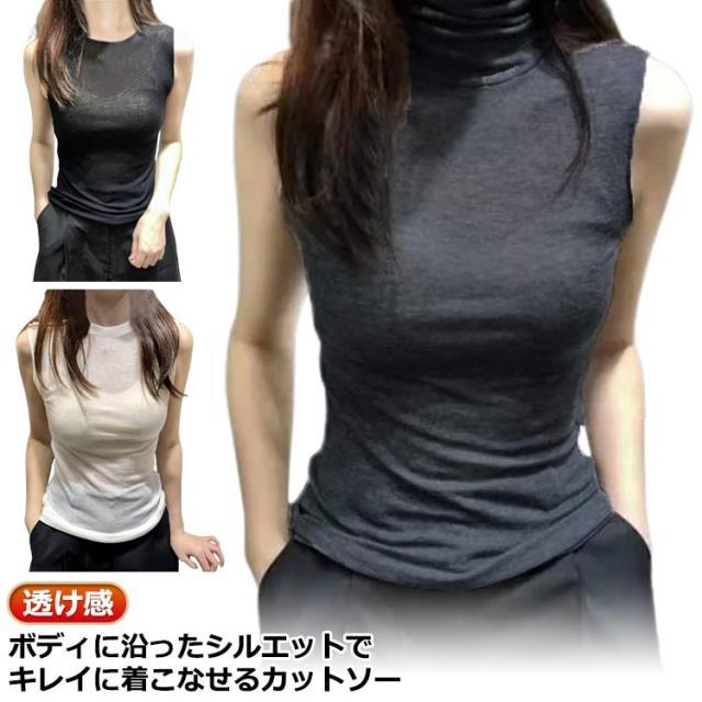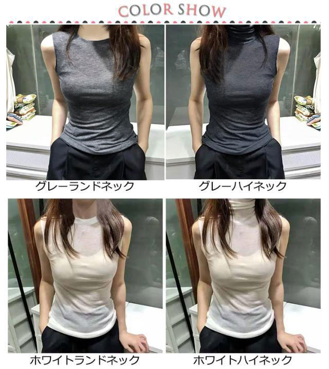 レディース 薄手 UVカット 大きいサイズ タンクトップ ハイネックデザイン ノースリーブ タートルネック 小顔効果 綿 カットソー レース インナー シアートップス ハイネック 透け感 春 夏 首 無地 紫外線対策 ハイネックtシャツ 黒 白 ホワイト ブラック