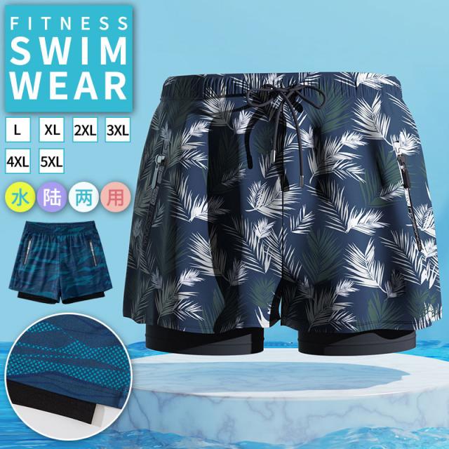 水着 メンズ 競泳 2層 速乾 海パン 水泳パンツ フィットネス 練習用 ボードショーツ スイムウェア 迷彩柄 膝上 インナーパンツ 短パン 夏