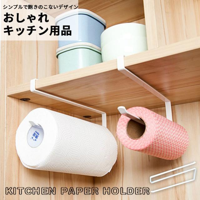 キッチンペーパーホルダー ステンレス ロールホルダー 吊り下げ 吊戸棚 戸棚下 収納扉用 スチール製 タオル掛け 棚フック 多機能ラック キッチン