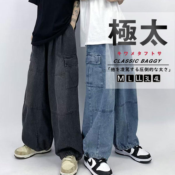 バギーパンツ メンズ デニム ワイド ジーンズ 太め 大きいサイズ カーゴパンツ 極太 ファッション ストリート系 秋冬