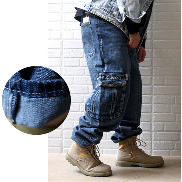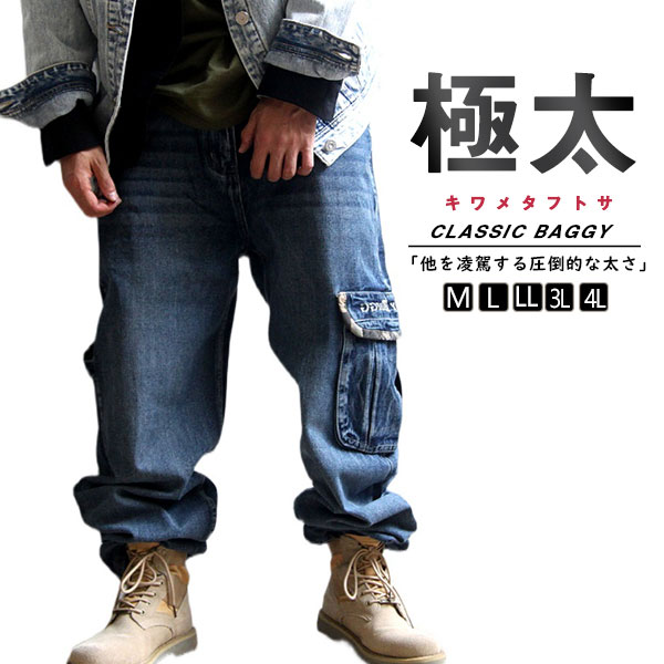 デニム ジーンズ メンズ バギーパンツ ポケット 太め ルーズフィット デニムパンツ デニム ワークパンツ 極太 ワイドパンツ 大きいサイズ