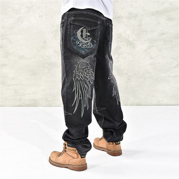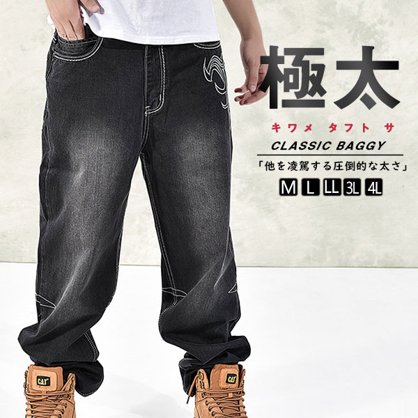 バギーパンツ メンズ デニム ジーンズ 刺繍 ワイドパンツ 極太 ルーズフィット ゆったり 大きいサイズ B系 ストリート 太め