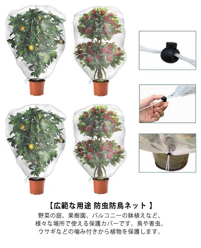 3枚入り 防虫ネット 虫よけネット 巾着式 植物保護カバー 鳥よけ 虫よけ ネット 菜園プランター用 鉢植え用 盆栽用 防虫カバー 園芸用ネット 虫鳥除け網 野菜網 野菜栽培 防虫 防鳥 鳩よけネット 家庭菜園 果樹 ガーデン 【送料無料】