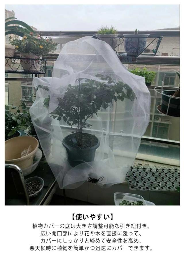 | メッシュ巾着袋タイプの防虫防鳥ネット。【幅50cm/80cm/100cm×高さ60cm/80cm/100cm/150cm】【Sサイズ、4枚入り】 【植物保護カバー】虫よけネット、鳥よけネットは通気性や耐久性に優れており、耐熱性、耐寒性、低熱吸収性を備え、低い直射日光の強度に対応しています。 【通気巾着式&軽量】環境に優しい高品質なナイロン生地素材を採用し、メッシ巾着式に作成されており、巾着底部は大きさ調整可能な引き紐付き。また低熱吸収性、低直射日光強度という優れた特性も備えて、植物の健康な生育状態を維持できます。軽量設計なので植物に負担をかけません。 【使いやすい】植物カバーの底は大きさ調整可能な引き紐付き、広い開口部により花や木を直接に覆って、カバーにしっかりと締めて安全性を高め、悪天候時に植物を簡単かつ迅速にカバーできます。 【再利用可能】高品質のナイロン素材で作らたプランターカバーで、丈夫で耐久性があり、使った後簡単に水洗いでき、保管に便利で、繰り返し利用もできます。 【取付け簡単防虫防鳥カバー】メッシュ巾着袋タイプで、樹木に被せて紐を締めるだけの簡単な取り付けが可能です。巾着式引き紐と広い開口部があり、花や木を直接覆い、プラントの高さや大きさに合わせて保護カバーを自由に調整できます。散水時には取り外す必要がなく、メッシュの目から直接水をまき散らすことができます。 【広範な用途 防虫防鳥ネット 】野菜の庭、果樹園、バルコニーの鉢植えなど、様々な場所で使える保護カバーです。鳥や害虫、ウサギなどの噛み付きから植物を保護します。ホワイトの色と透気性の生地で、植物の光合成と呼吸を妨げず、猛暑の日でも守ります。菜園、プランター、花壇など、多様な場所で使用でき、植物に包括的な保護を提供します。 | |