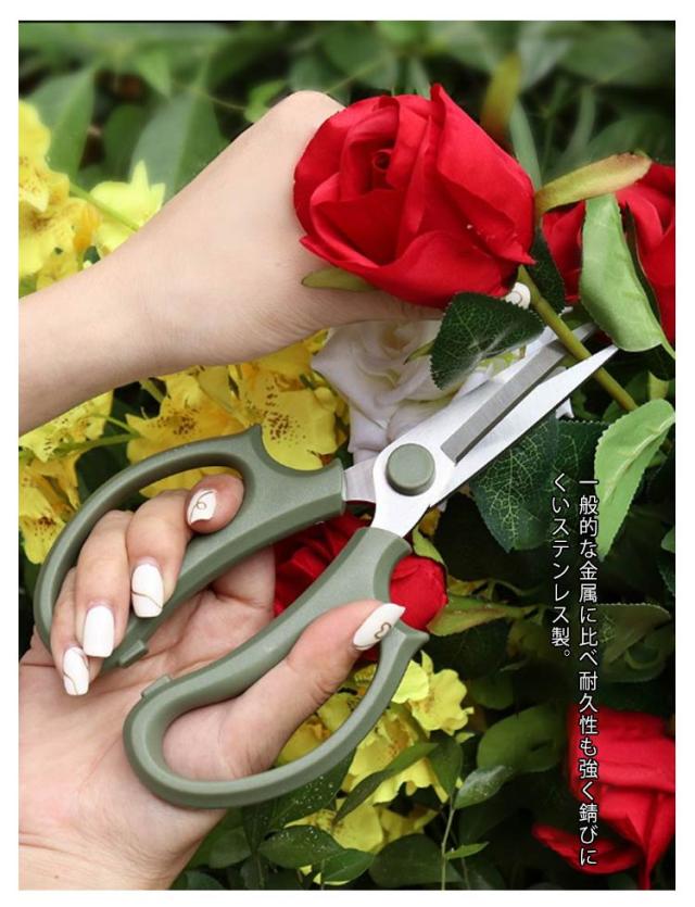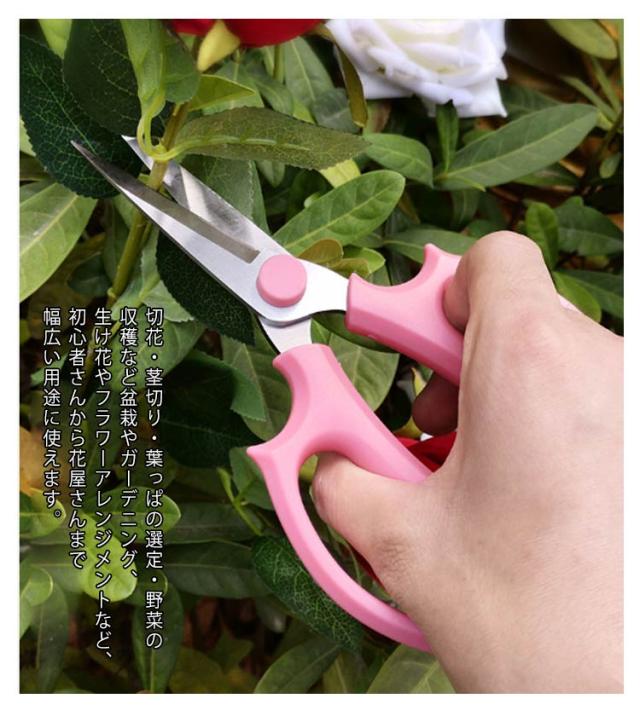 | ステンレス製先端が尖ったタイプの園芸ハサミ。【2本セット】 花がもつ本来の美しさを最大限に引き出してくれる花と花屋さんのための花はさみです。 切ることが楽しくなるほどの切れ味の花はさみ! 一般的な金属に比べ耐久性も強く錆びにくいステンレス製。 重さはたったの91gと超軽量。軽いので長時間の作業でも疲れにくい。 切花・茎切り・葉っぱの選定・野菜の収穫など盆栽やガーデニング、生け花やフラワーアレンジメントなど、初心者さんから花屋さんまで幅広い用途に使えます。 | |