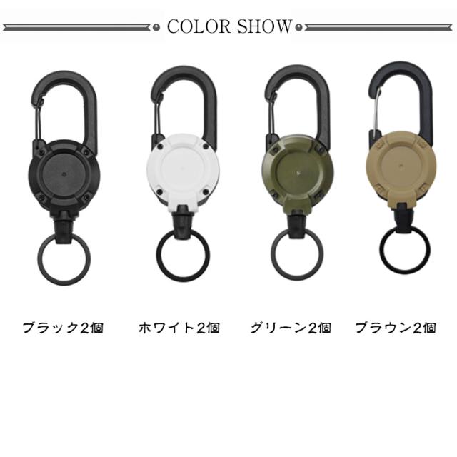 2個セット!伸びる リールキーホルダー カラビナ式 ピンオンリール 強力 キーリール 金属ワイヤー 最長60cm キーチェーン 紛失防止 丈夫 釣り アウトドア キャンプ 軽量 登山 ストラップ カラビナ キーリング 落下防止 フェス 鍵
