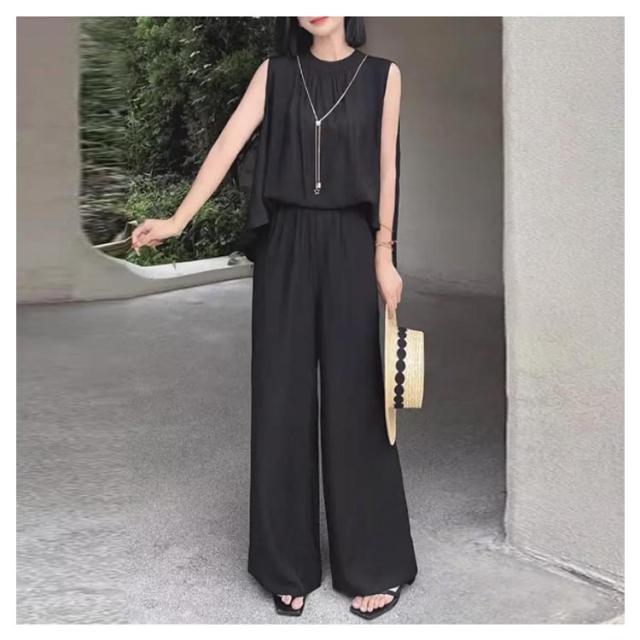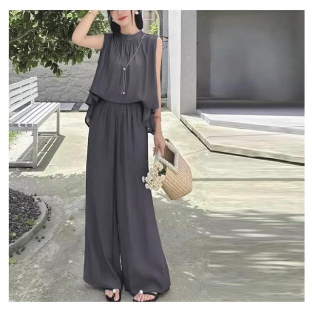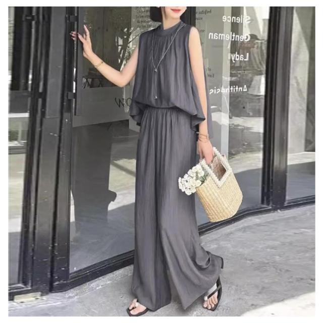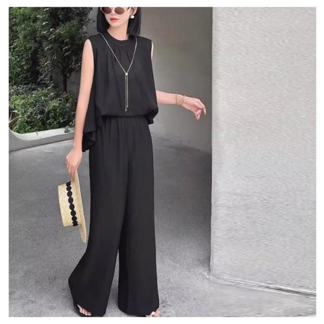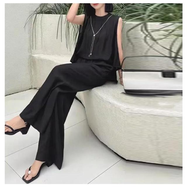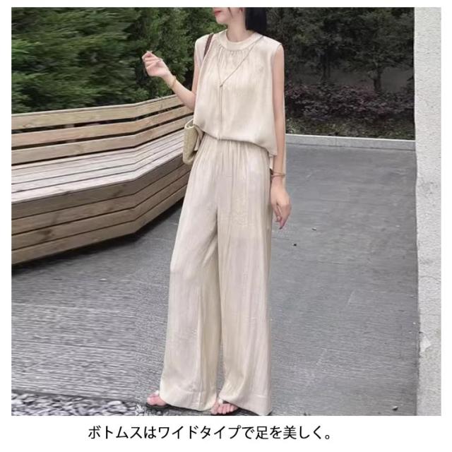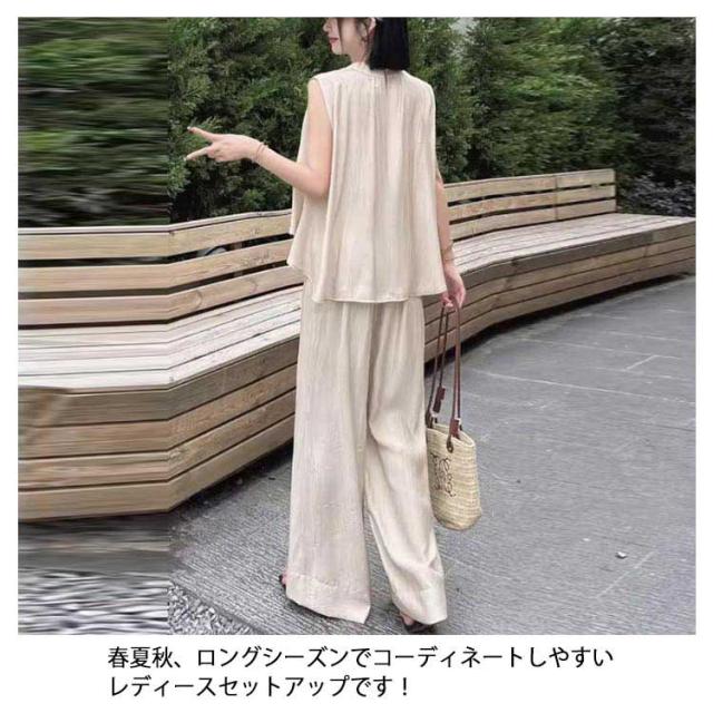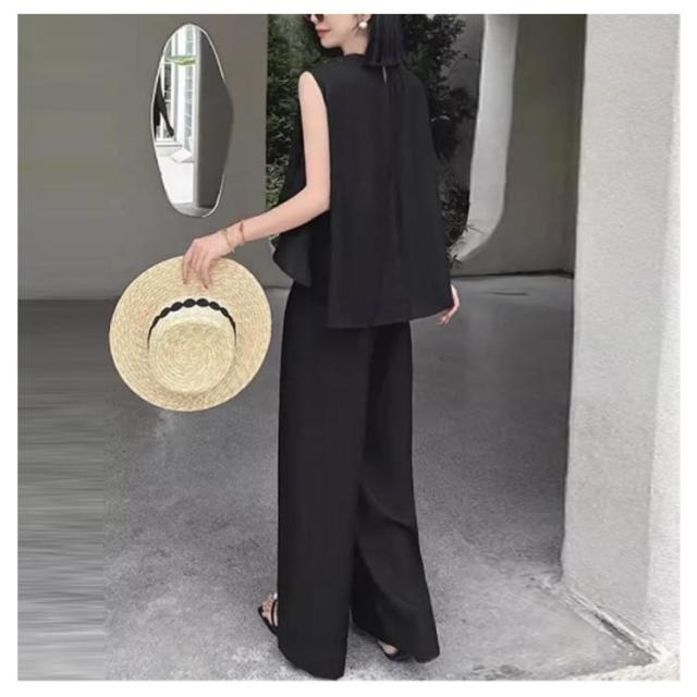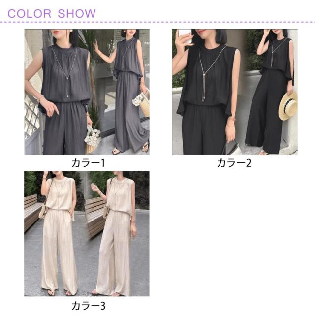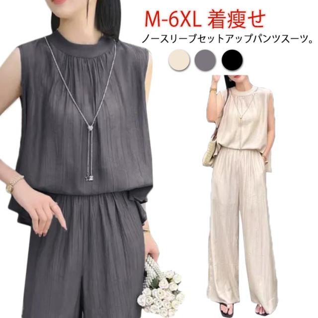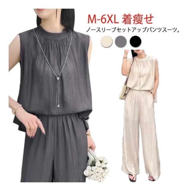 セットアップ レディース カジュアル 夏 大きいサイズ パンツスーツ ノースリーブ パンツドレス 春夏 夏 お出かけ お呼ばれ 普段着 ワイドパンツ 体型カバー ゆったり ハイウエスト 脚長効果 着?せ M L XL 2XL 3XL 4XL 5XL 6XL