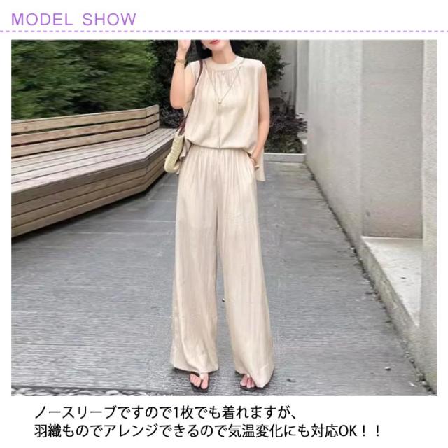 | 全3色×8サイズ!ノースリーブセットアップパンツスーツ。 ノースリーブですので1枚でも着れますが、羽織ものでアレンジできるので気温変化にも対応OK!! ボトムスはワイドタイプで足を美しく。 春夏秋、ロングシーズンでコーディネートしやすいレディースセットアップです! | |