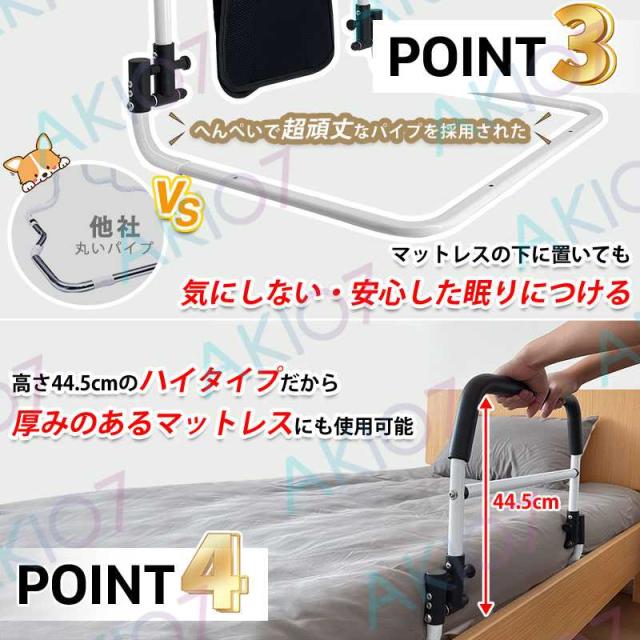 【立ち上がり補助手すり】ベッド 柵 ベットガード ベッドレール サイドレール 介護用品 バッグ付 折りたたみ可能 転落防止 コンパクト 大人 高齢者向け