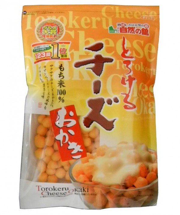 | 原材料 | 名称:米菓 もち米(中国)、チーズパウダー、食用パーム油、食塩、乳糖、乳等を主原料とする食品、粉糖、ぶどう糖、醤油パウダー、蛋白加水分解物、酵母エキスパウダー、香辛料、チキンエキスパウダー、調味料(アミノ酸等)、トウガラシ色素、香料、甘味料(甘草、ステビア)、パプリカ色素 |