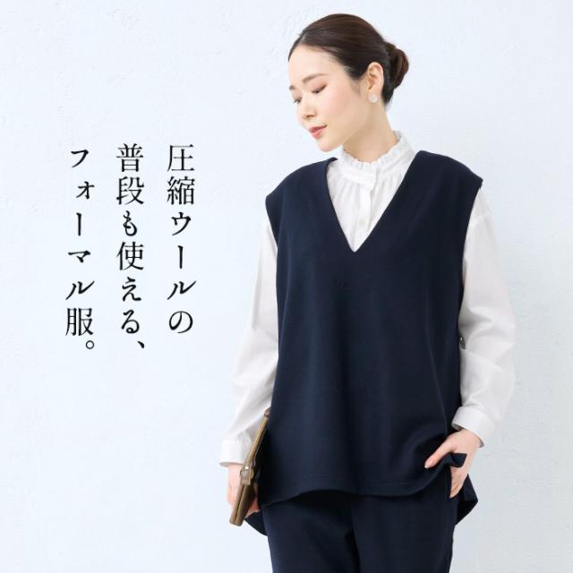 圧縮ウール100% ベスト + アンクルパンツ 2点セット 日本製 / 卒業式 セットアップ 入学式 ママスーツ 30代 40代 50代 きれいめ 上下セット 礼服 母 ストレッチ 入学式 ママスーツ 秋冬 秋 冬