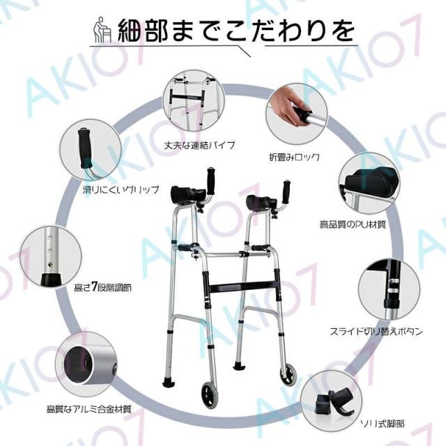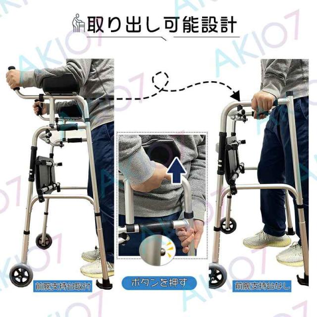【アルミ製&座面付き】歩行補助具 高齢者用歩行器 母の日 歩行器 歩行車 コンパクト 怪我 折りたたみ 介護用 高齢者用 室内用 歩行訓練 病院 自宅 前腕支持台型歩行車 直立歩行器