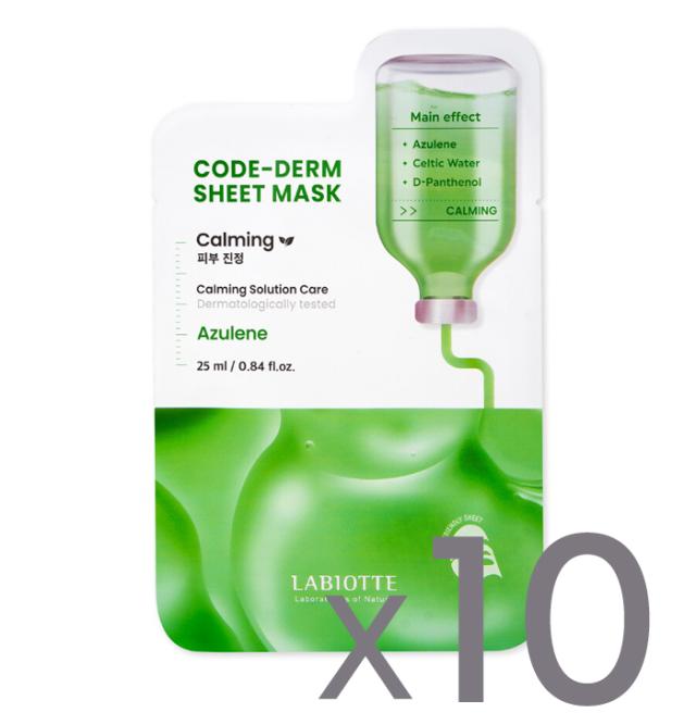 LABIOTTE コードダームシートマスク カーミング 10枚 メール便送料無料 韓国コスメ マスクパック 敏感肌 アズレン バリア機能 ビーガンシート