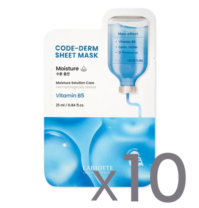 LABIOTTE コードダームシートマスク モイスチャー 10枚 メール便送料無料 韓国コスメ マスクパック 乾燥肌 パンテノール 水分補給 ビーガンシート
