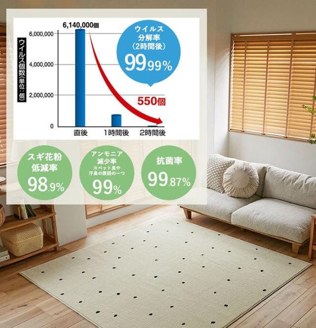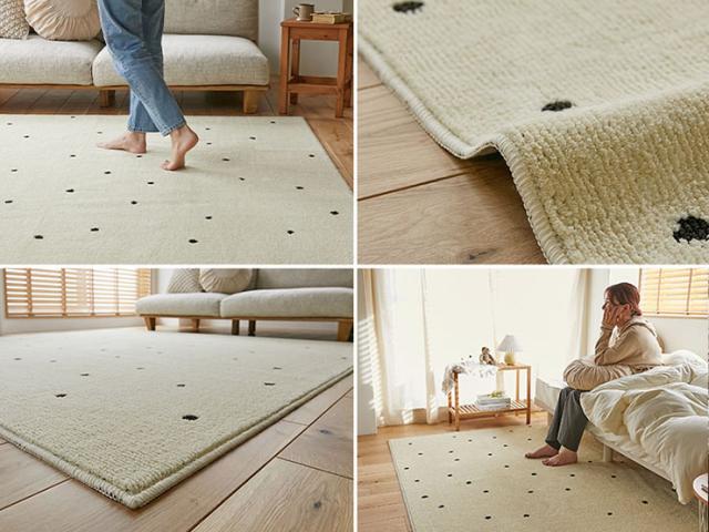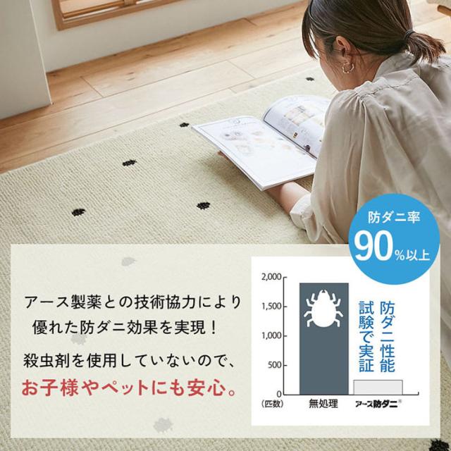 【ホットカーペット/床暖房対応】国産 ラグ 洗える 190x240cm ドット柄 ポッシュ 3畳 カーペット ラグマット 長方形 絨毯 洗濯機OK 防ダニ 抗菌 コンパクト ダイニング リビング ラグ ふわふわ おしゃれ 北欧