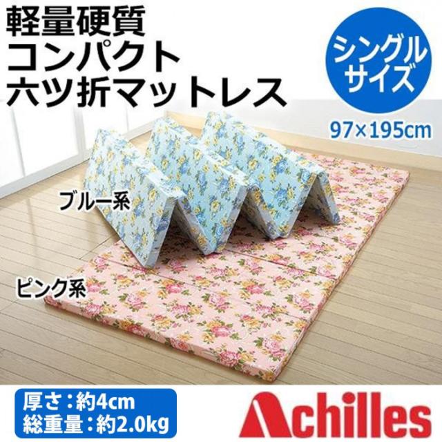 | とっても軽いので、持ち運びもラク♪畳みやすい6つ折タイプです。使用しないときは6つに畳んでコンパクトに収納できます。奥行きの狭いクローゼットにも収まります。アキレス社製硬質マットレス使用。しっかり硬めタイプで身体の沈み込みを防ぎ、心地よい眠りをサポートします。 |