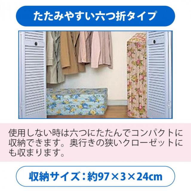 越後ふとん 軽量硬質コンパクト六ツ折マットレス(4cm厚) シングル 97×195cm ブルー系・150944【メーカー直送】代引き・銀行振込前払い・同梱不可