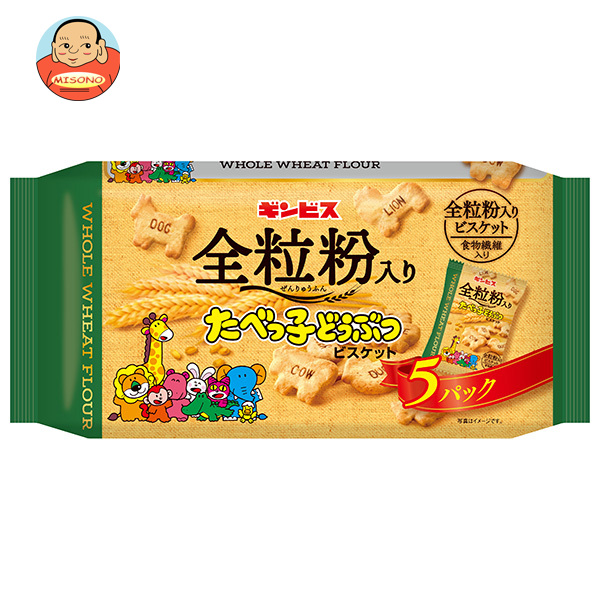 ギンビス 全粒粉入り たべっ子どうぶつ5P 100g×12個入| 送料無料 お菓子 ビスケット 食物繊維 小分け パック