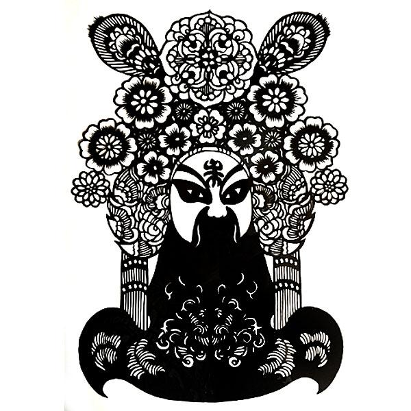 この美しいの中国伝統工芸「切り絵」は、三国志の英雄、関羽をモチーフにしています。