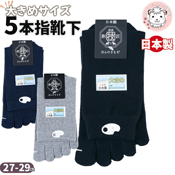 綿混 大きいサイズ 5本指ソックス 2足セット下 クルー丈ソックス 日本製 27-29cm | 5本指 メンズ 五本指靴 靴下 くつした オールシーズン