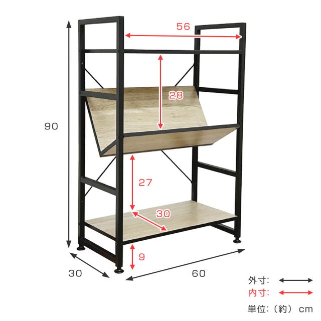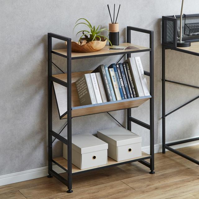 ブックシェルフ 幅60cm 3段 木製 アイアン ( 本棚 棚 ラック 収納 書棚 三段 古木風 シェルフ マガジンラック 絵本 リビング ディスプレイ サイドラック )