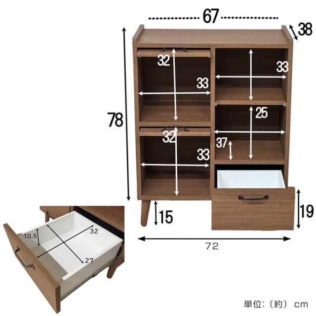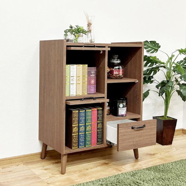《 LH16140 隠す収納 飾り棚 シェルフ 書棚 整理 リビング 幅75 70 奥行40 高さ75 78 cm センチ 家具 北欧 ブラウン 木目調 サイドボード おしゃれ お洒落 オシャレ かわいい 可愛い カワイイ 人気 模様替え 新生活 引出し 引出 》