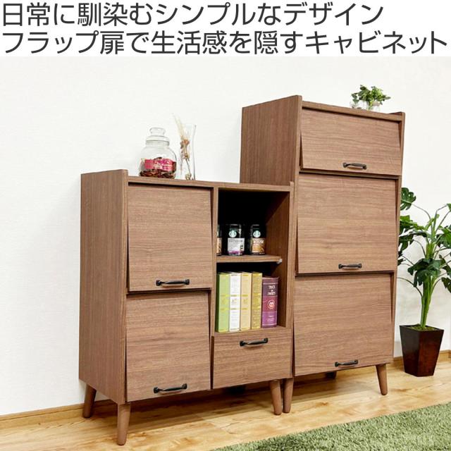 キャビネット 幅72cm フラップ扉 日本製 ( 本棚 ラック 棚 フラップ 扉付 収納 ディスプレイ マガジンラック 天然木脚 スライドレール 可動棚 引き出し シンプル )
