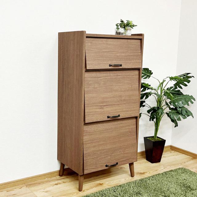 キャビネット 幅60cm 3段 フラップ扉 日本製 ( 本棚 ラック 棚 フラップ 扉付 収納 ディスプレイ マガジンラック 天然木脚 三段 隠す収納 シンプル )