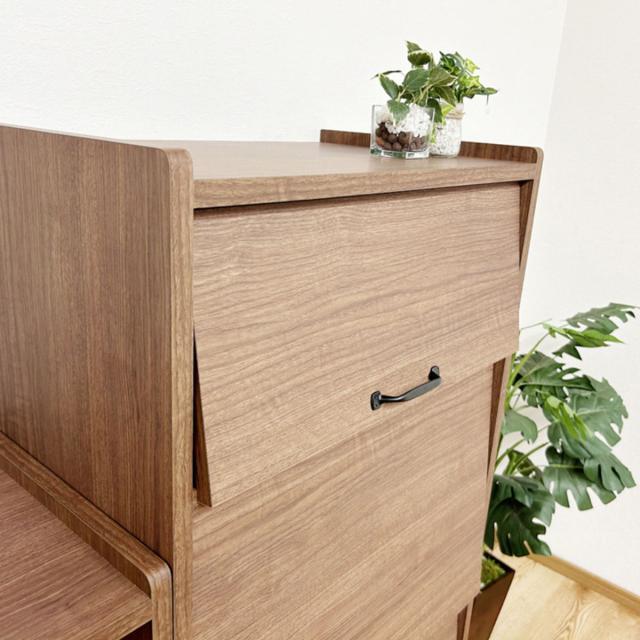 ![]() 引出し収納付き 幅72cm | ![]() 3段のフラップ扉 幅60cm |