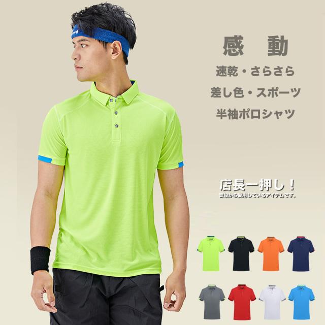 速乾 半袖 ポロシャツ メンズ 薄い DRY 涼しい #TP45c1 無地 通気性 サラサラ 伸縮性 ドライポロ トップス M便 注