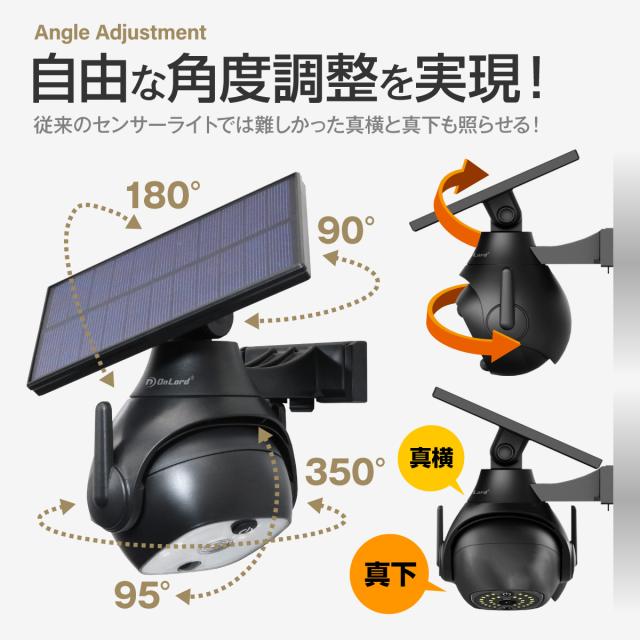 ★自由な角度調整を実現!従来のセンサーライトでは難しかった真横と真下も照らせる!
